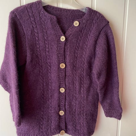 Deilig strikkejakke i kløfri ull ca str 116, hentes i Drammen eller sendes mot porto. Kun 500kr