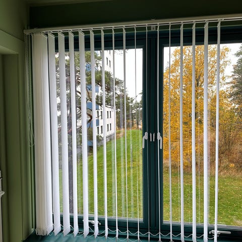 - plasthendel på venstre side til å vri lamellane
