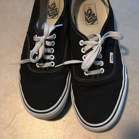 Vans sneakers i størrelse 46/30 cm selges for kr. 500. Brukt bare 5 ganger. Tilnærmet nye, med med noen få bruksmerker.