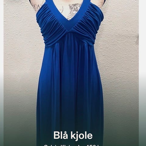 Fin blå knelang finkjole med paljett pynt i midjen. Pent brukt