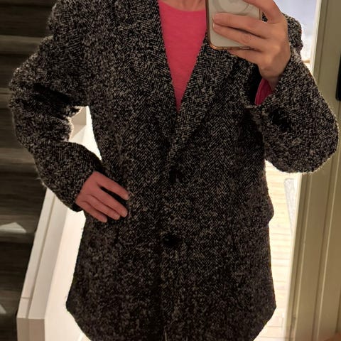 Selger denne fine og populære blazerjakken fra H&M da jeg har for mye jakker og den dessverre ikke blir brukt. Nydelig børstet overflate som gjør at den ser skikkelig eksklusiv ut. 25% ull så den er perfekt når høsten melder sin ankomst. Kjøpt i størrelse L for å få en oversized fit, kan passe alt fra XS-L basert på hvordan du ønsker at den skal sitte. Superpopulær jakke som gikk viralt på tiktok i fjor.