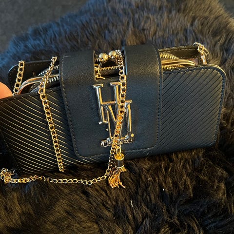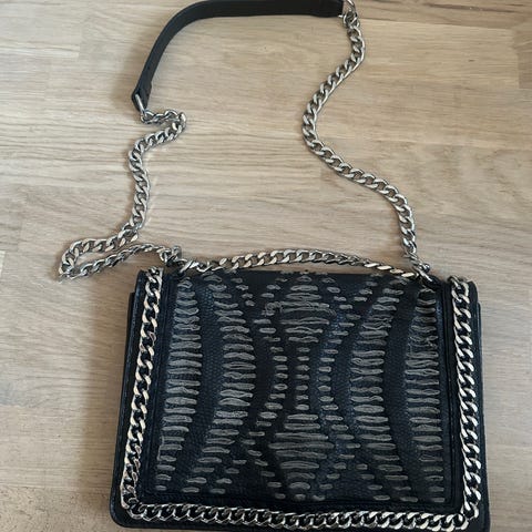 Semsket dus rosa/gammelrosa rommelig veske. Den er lite brukt. Vesken har rom med glidelås på utsiden. Den kan lukkes med knyting (se bilde).