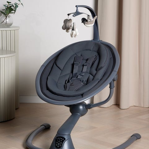 - 5-punkts sikkerhetssele med skulderputer for komfort, avtagbar nyfødtpute for ekstra støtte og avtagbar lekehenger hvor du kan feste favorittleken.