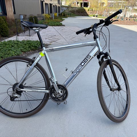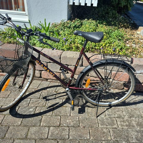Klassisk DBS Kilimanjaro, rammestørrelse 53 cm, i rød farge. Sykkelen er pent brukt og fungerer godt, men kun forbremsen virker , bakbremsen har en ødelagt wire og må utbedres.
