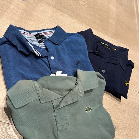 Tre stk plagg, oransje genser fin til vår/sommer/ høst. Blå sommerskjorte med kul RL brodering. Blå skjorte i klassisk (t -skjorte stoff), men med lange armer. Se str på de ulike bildene. Alle passer til Large størrelse 👍 Selges helst som samlet til 900,- evt. 400,- for genser/ Blå sommerskjorte og 350,- for «t skjorte med lange armer»