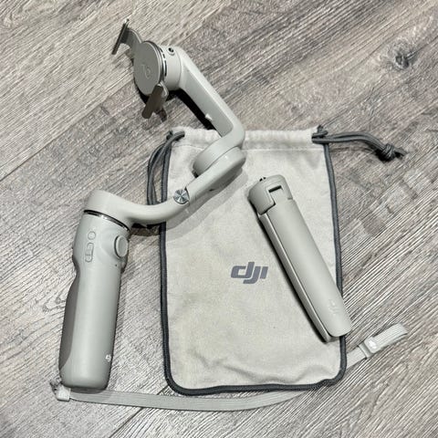 DJI OM 5 er en smartphone gimbal i hvit farge. Den er designet for å stabilisere mobilkameraet ditt og forbedre videokvaliteten ved opptak. Enheten har et teleskopisk design som gjør den kompakt og lett å bære, samtidig som den kan forlenges for bedre rekkevidde. Passer for bruk med de fleste smarttelefoner.