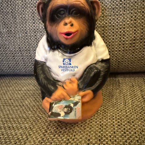 Julius Sparebøsse. Plast Sort/Hvitt 14x8cm. Logo Haugesund Sparebank