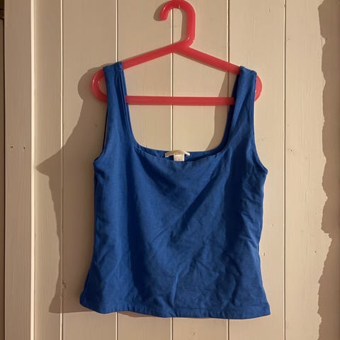 Gina Tricot Tanktopp i blå farge, størrelse S. Laget av 96% organisk bomull og 4% elastan. Passer til kvinner.