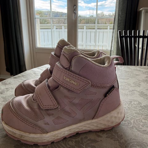 Viking GORE-TEX barne-sneakers i størrelse 26. De har borrelåsfeste for enkel på- og avkledning og en slitesterk såle som gir godt grep. Lite brukt, da vårt barn vokste raskt ut av de.