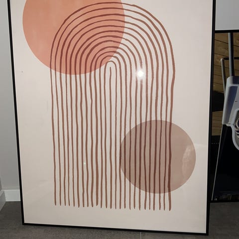 Ingen synlige merker etter å ha hengt i gangen i den tiden vi har hatt det. Står lagret i tørr kjeller nå.