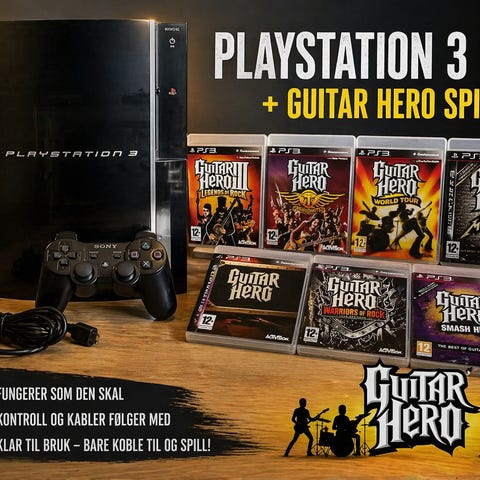 Playstation 3 med Trommer og guitar hero