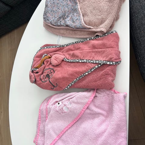 Selger alle varene på bildene samlet - håndklær, tøybleier, en liten dyne, tepper, en pute til bilen/barnevognen for å holde hodet i riktig posisjon.