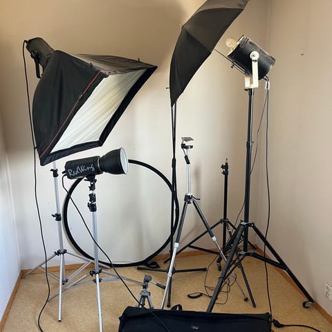 Total nypris for hele pakken inkl. tilbehør var ca. 50.000 kr, så her betaler du kun ca. 18% av nyprisen. Dette er svært solide og kraftige blitzer som varer lenge.