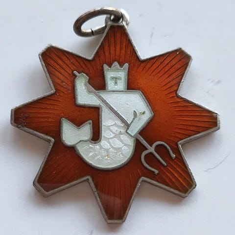 Merket er laget av Øystein Balle (1928-1998). Emaljesmykker av Øystein Balle er meget ettertraktede. Han er kjent for meget flott design.