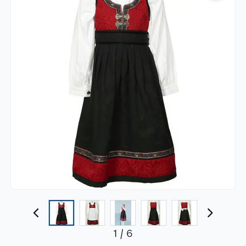 Str 14 år, men liker man den lang, kan man fint bruke den fra 11/12 år. Kommer med skjorte og belte, samt oppbevaring pose.