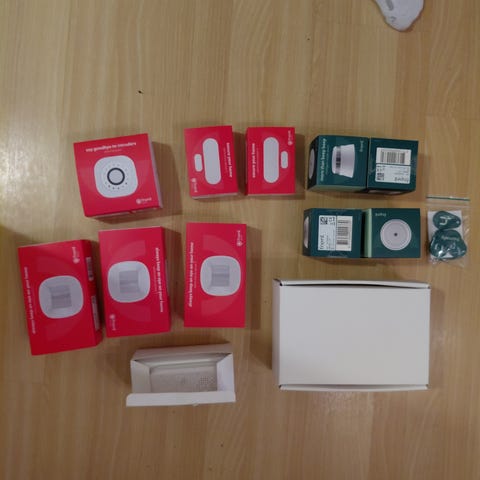 Novus Alarm System Komponenter i hvit farge. Inkluderer flere komponenter som :