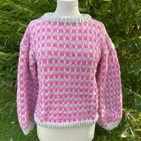 Strikket i Gann garn - Fauna (40 % fineste alpakka, 40 % Australsk mulesing-fri merinoull, 20 % nylon).