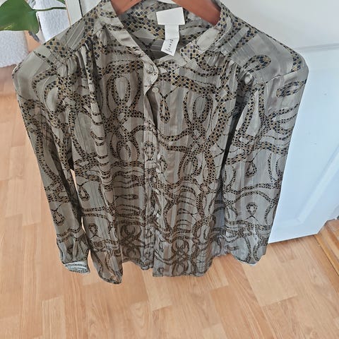 Mange flotte detaljer på ermene og i fronten. Lettstelt bluse som bare skylles opp i 30 grader. Skal ikke strykes. Lengde på erme er ca. 47 cm fra skulder og ned.