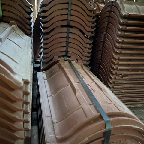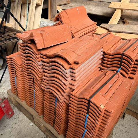 Takstein Benders Rød Enkelkrum selges billig.