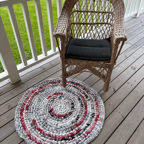 Lilla, rød og hvit fargekombinasjon. Passer fint på badet, barnerommet eller i gangen. Også fint på uteplass under tak.