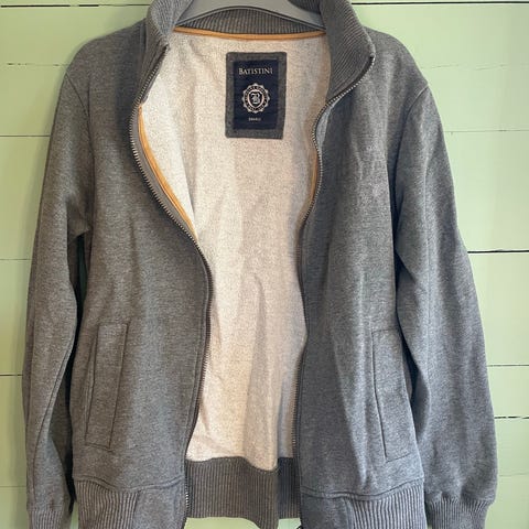 Alt er på plass. Ingen rifter eller skader, men den metallbiten på glidelåsen, den man drar i, er borte. Ikke røyklukt eller annen vond lukt.