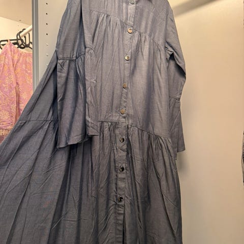 Lang kjole i svart og grå. Bare prøvd på, størrelse S! Kjempefin kjole å bruke i både sommer og vinter.