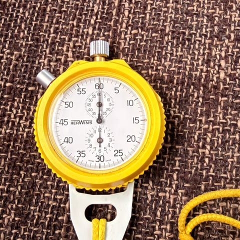 Lemania stoppeklokke. Fungerer som den skal. Har et skår mellom 40 og 45 på urskiven, se bilde. Dette reflekteres i prisen