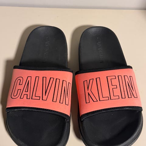 Calvin Klein slippers i svart farge, størrelse 39. Laget for komfort og hverdagsbruk. Passer for både innendørs og utendørs bruk.