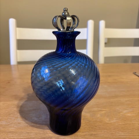 Karaffel med topp i metall og kork h:13 cm Ø nede ved sokkel: 7 cm