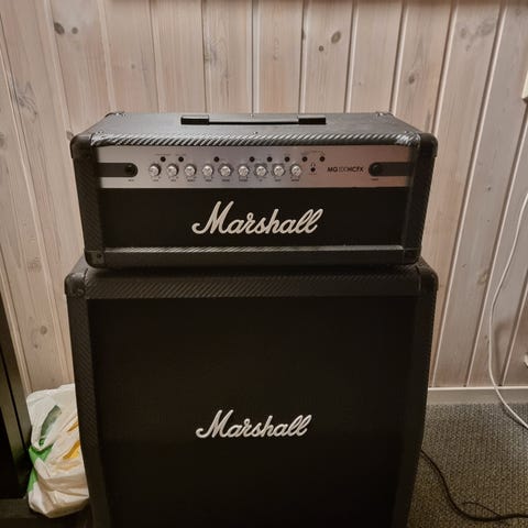 Marshall forsterker og Shred Master med ukjent tillstand, kun strømkabel til forsterker, ingen andre kabler. Selges kr. 1200,-. Må hentes i Hønefoss
