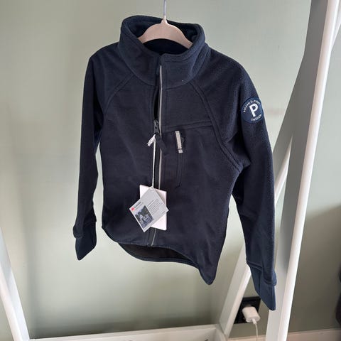 Jakken er rød og unisex, laget av fleece-materiale. Den har glidelås foran og en brystlomme med glidelås. Jakken har ribbestrikkede mansjetter og reflekser på ryggen for økt synlighet.