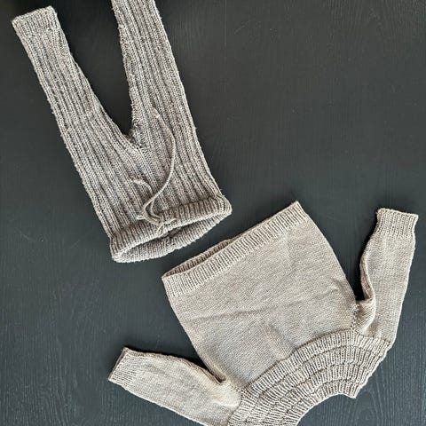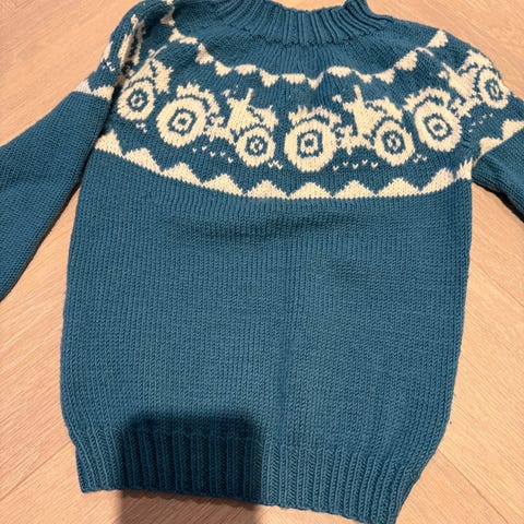 Hjemmestrikket ullgenser i ca størrelse 92.