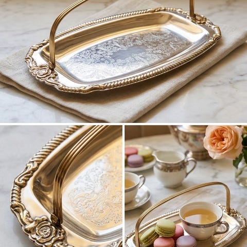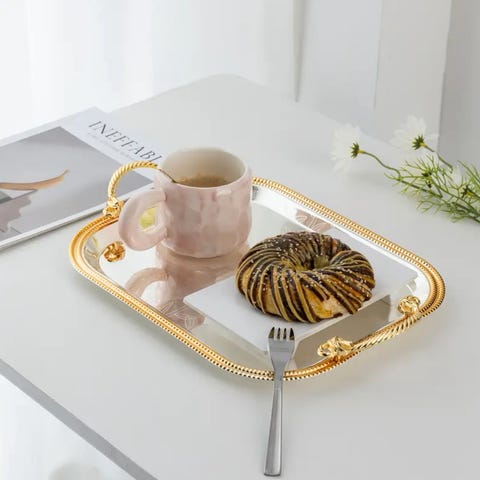 Elegant Gullfarget Serveringsplate med Dekorative Gylne Kanter.