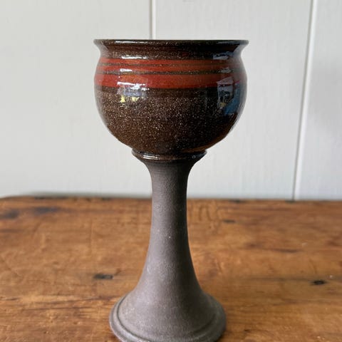 Retro Keramikk pokal vase i brun og beige farge. Høyde ca. 14 cm, diameter på åpning ca. 10 cm. Laget av keramisk materiale, egnet for dekorative formål.