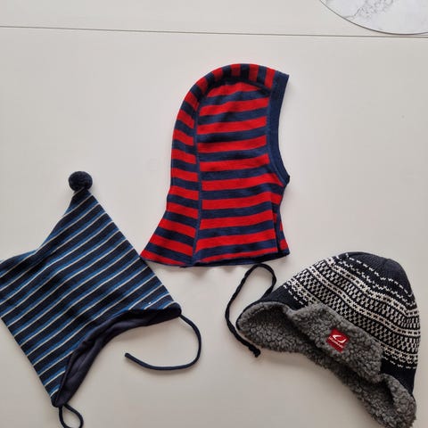 3 hodeplagg fra Cubus, Reima og Pierre Robert. Pent brukt av ett barn. Ingen hull eller flekker. 100% ull. Perfekt til barnehagen. Hodeomkrets 48/50 cm. Tilsvarer str 92/98