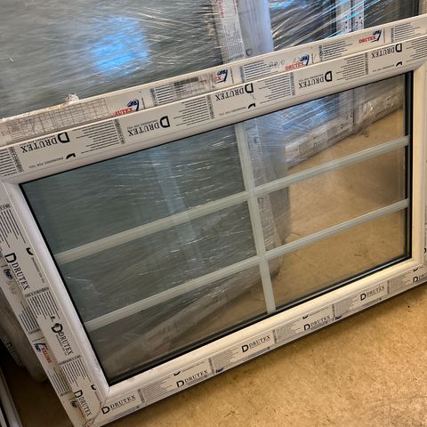 Vindu i størrelse 120x160 cm med hvit PVC-ramme.