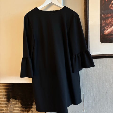 Kjole fra Zara i perfekt dyp, rød farge. Drapering på siden. Klassisk og pen, faller veldig fint på kroppen. Oppleves som normal i str.