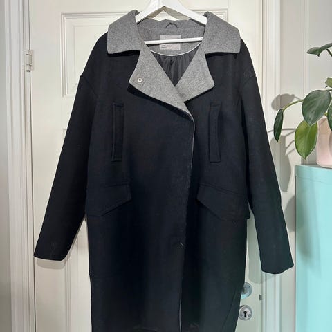 Fin kåpe som er ubetydelig brukt ☘️ sitter veldig pent. 42/44☘️ 55%ull og resten viscose. Tynt fór.