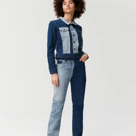 Mango jeans i dekonstruert stil med color block-detaljer. Disse buksene har en spennende og unik design med lapper i forskjellige denimfarger, som gir et tøft og moderne utseende.