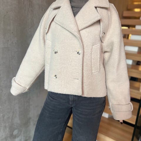 NA-KD Andre jakker Jakke i beige farge, størrelse 36. Jakken har dobbeltradet knappelukking, stor krage og sidelommer. Passer for kvinner og er laget i et materiale som gir struktur og varme.