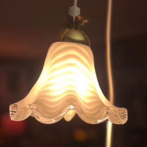 Skjermene er fra «Speilegg» lampen til FOG & Mørup, Denmark. « Fried egg, Spejlæg» fra tidlig 1900 tallet, ca 1930.