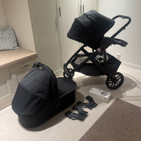Sittedel/Stroller-del er pent brukt. Liggedel/Carry Cot-del er ubrukt.