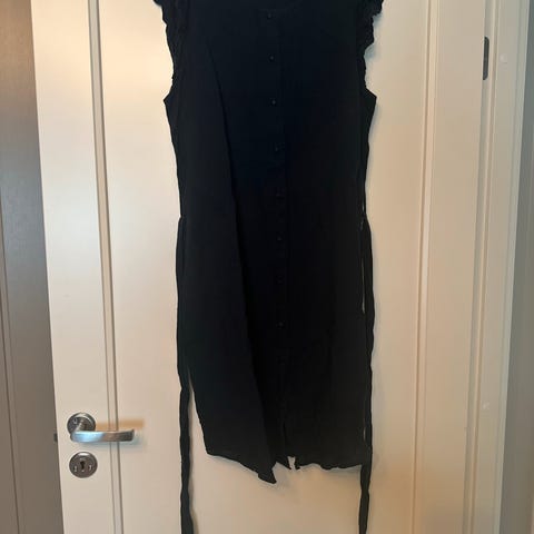 Nydelig 1980 talls vintage kjole str M. Pent brukt. Svart med hvite ermer. Litt skade på blad detaljer på skuldre. Dem kan fjernes men lar dem være på om man foretrekker å fikse dem.