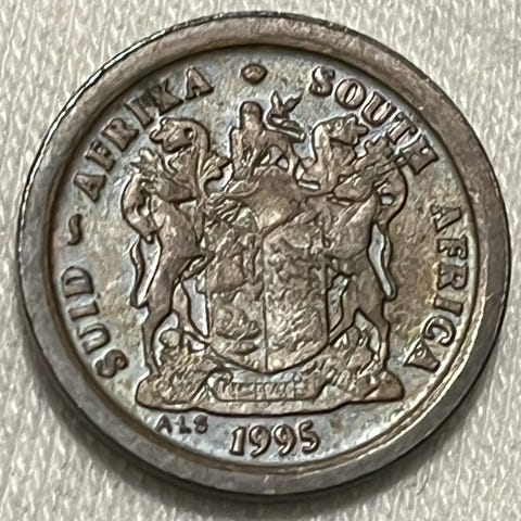 South Africa 1962 1/2 Cent mynt med motiv av to fugler og plante på den ene siden, og tekst 'UNITY IS STRENGTH' på den andre siden. Mynten er laget av metall og har en diameter som passer til små myntsamlinger. Egnet for samlere eller som historisk mynt.