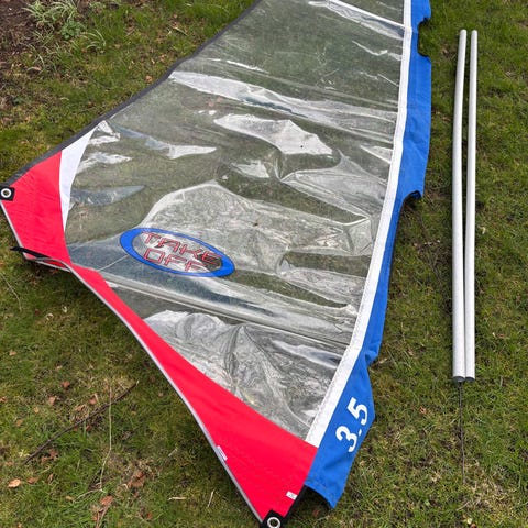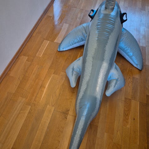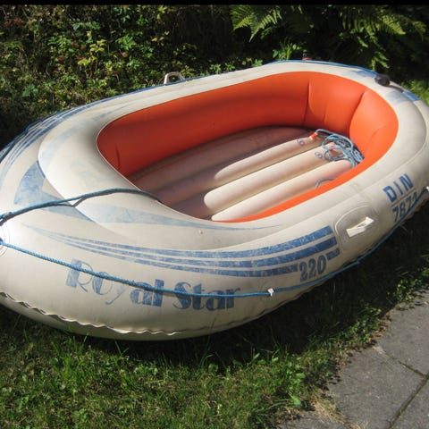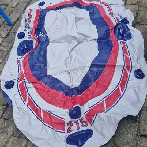 Oppblåsbar vannleke i rød og blå farge, laget av vannavstøtende materiale. Designet for utendørs bruk, egnet for vannaktiviteter. Utstyrt med festestropper for enkel håndtering og sikkerhet.gøy å henge bak båten 🙂følger med tau.