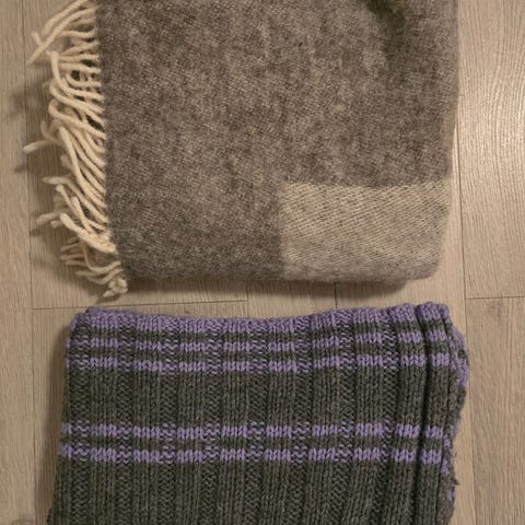 Håndstrikkede babytepper i ull selges. Lette, myke og varme.
