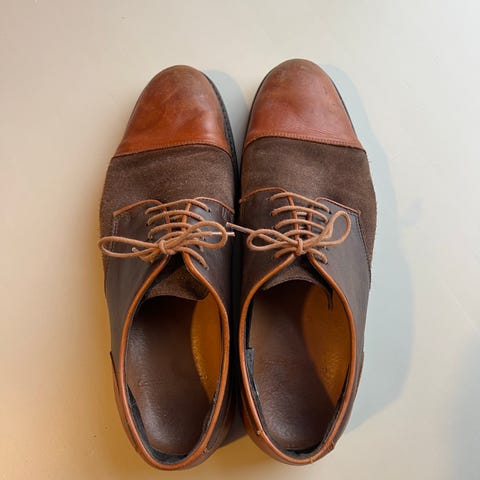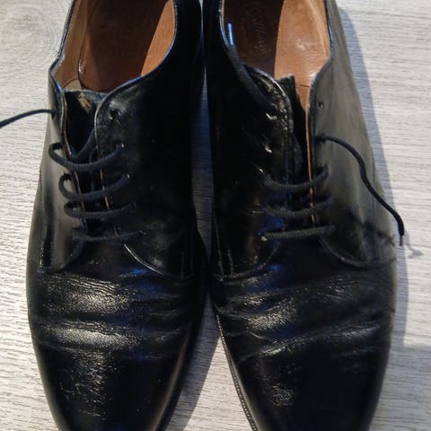 Skoene er brukt en gang til dress. Merke Lasocki. Er som nye og skoene er i semsket skinn med litt sømdetaljer. Skoene er gode og myke.