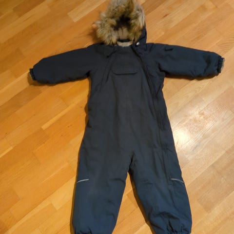 Wheat vinterdress i størrelse 98 med flerfarget mønster. Dressen har hette og er foret med mykt materiale for varme og komfort. Elastisk midje for bedre passform. Egnet for utendørs bruk i kaldt vær. Masse bruk igjen.