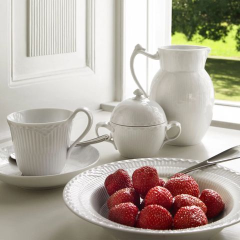Laget av porselen, egnet for daglig bruk.