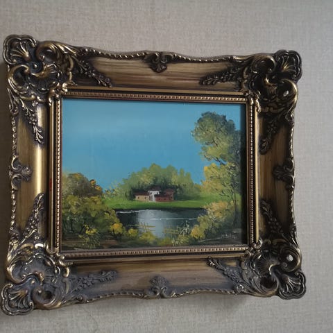 gammelt maleri vurd. solgt. Signert K. Straume n.t.h. Olje på lerret. Rammemål: H: 59 cm. + B: 80 cm. Ant. orig. innramming med gull forgylling.